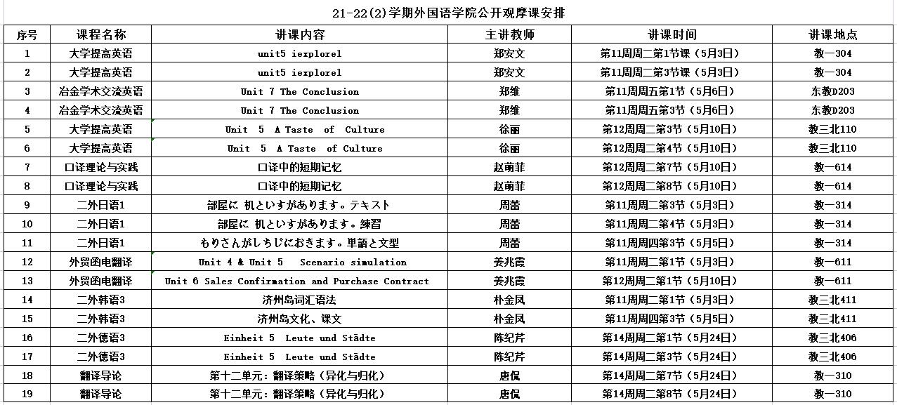 21-22(2)学期太阳成tyc7111cc集团公开观摩课安排