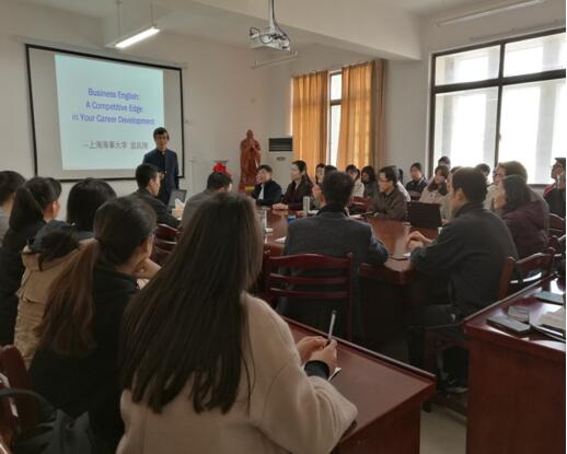 11月24日上午,上海海事大学翁凤翔教授在秀山校区汇文楼B 502做了题为《我国商务英语发展现状与展望》的报告。报告由太阳成tyc7111cc集团经理洪流教授主持,来自公司太阳成tyc7111cc集团和安徽冶金科技职业公司的部分师生到场聆听了报告。