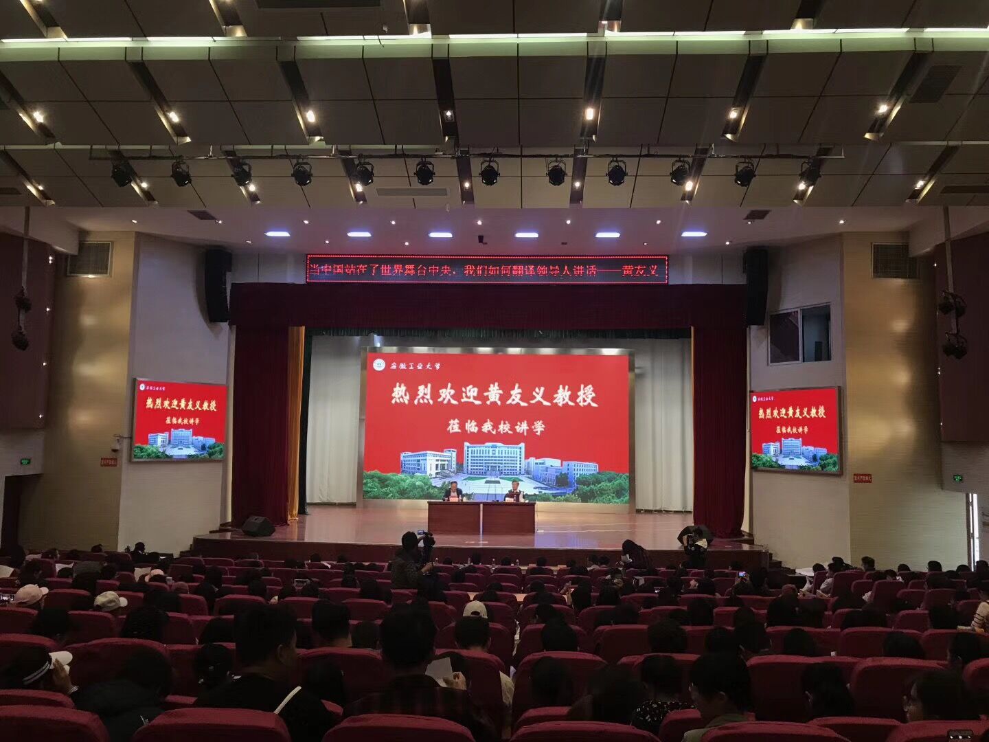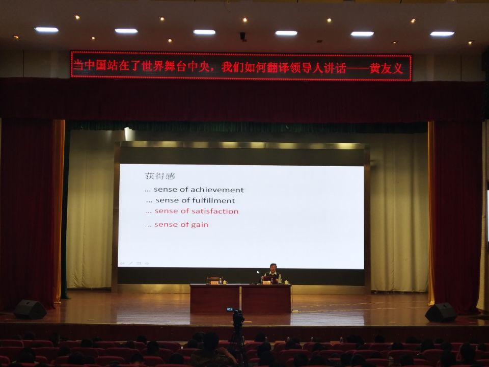 4月10日下午,中国人民政治协商会议第十一届、十二届全国委员会委员,全国政协外事委员会委员,中国经济社会理事会理事,国务院学位委员会委员,中国译协常务副会长、中国翻译研究院副经理、全国翻译资格(水平)考试英语专家委员会主任、全国翻译系列高级职称任职资格评审委员会主任、全国翻译研究生专业学位教学指导委员会主任委员、教育部外语中文译写规范和中华思想文化术语传播部际联系会议首席专家黄友义教授应邀来公司讲学,在秀山校区新老员工活动中心与公司师生分享自己的翻译心得和经验。报告会由副董事长葛芦生主持,瑞科翻译有限公司左仁君总经理、江苏省工程技术翻译院有限公司包亚芝总经理、太阳成tyc7111cc集团师生及其他公司员工听取了报告。