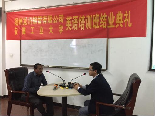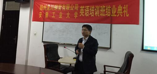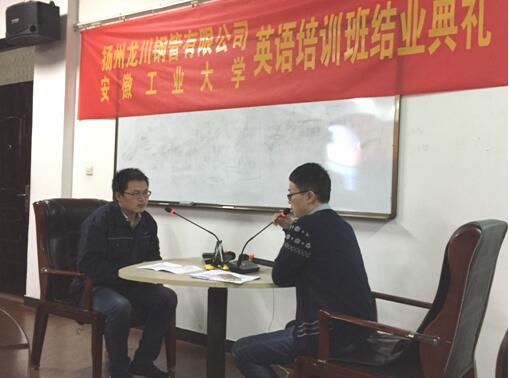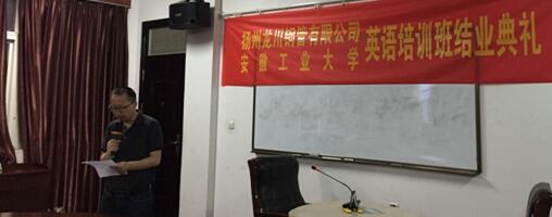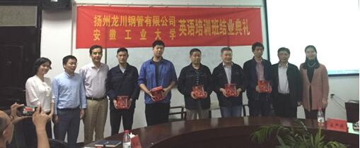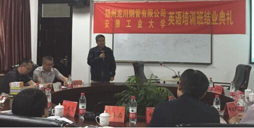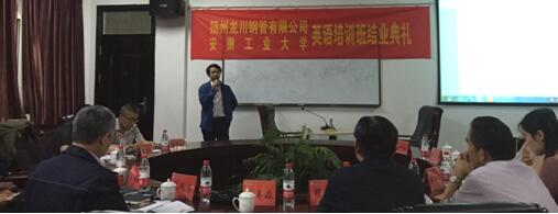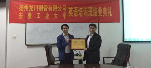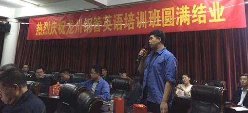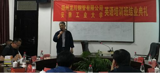 5月26日下午,公司太阳成tyc7111cc集团与扬州龙川钢管有限公司合作举办的历时一年多的员工培训顺利结业,双方在扬州龙川钢管有限公司举办培训成果展示活动暨结业典礼。太阳成tyc7111cc集团领导班子成员胡卫东、黄宇弦、曹瑞斓和承训教师代表周家春、詹声斌、宋严侠,龙川公司领导史善淼、尤凤志、王鹏展及全体学员等40多人参加了典礼。