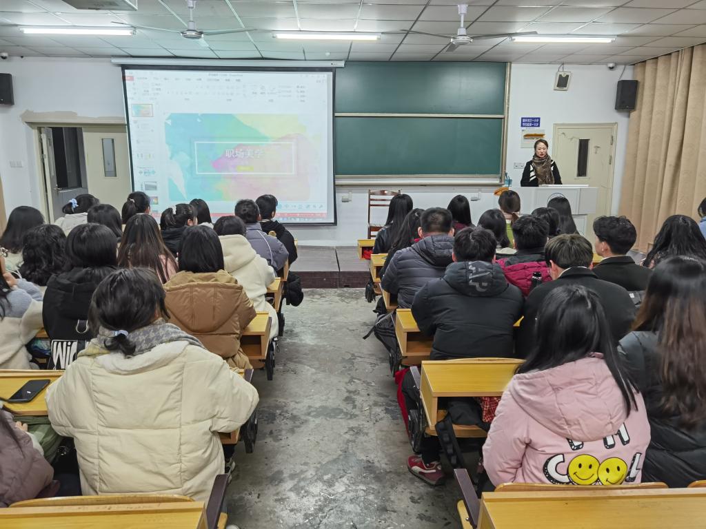 为提升太阳成tyc7111cc集团员工形象,增加员工自信与魅力,熟悉职场工作规范,太阳成tyc7111cc集团于12月8日和15日在教一401开展了两次职场美学专家报告,翻译专业全体同学到场参与并学习。
