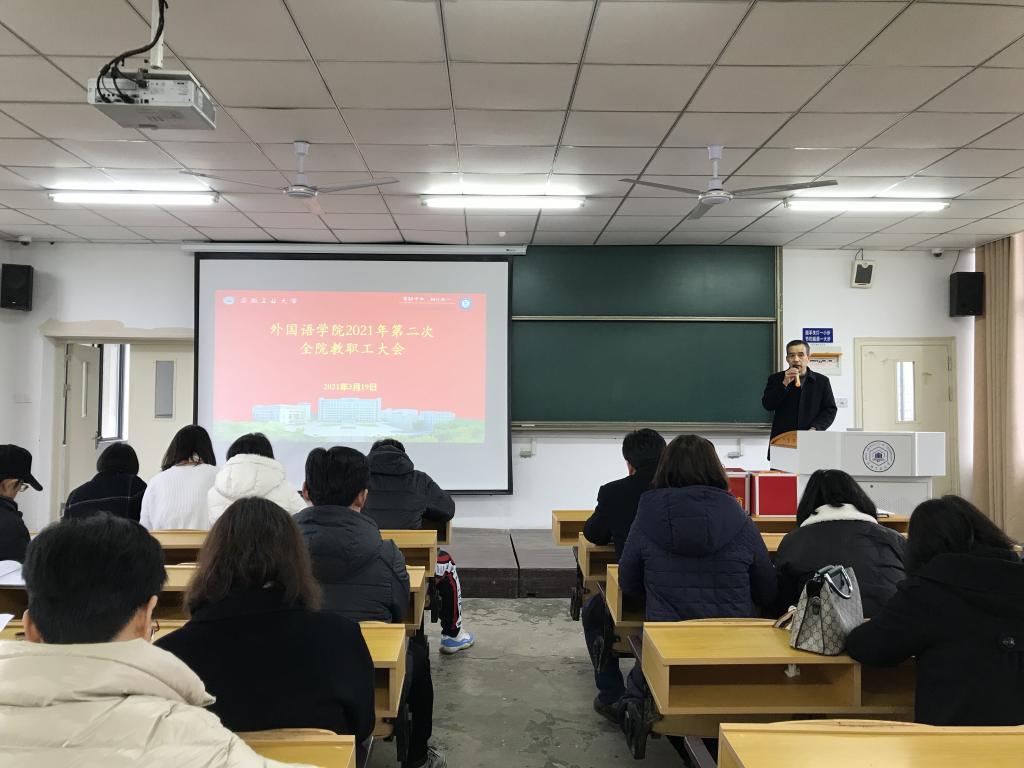 3月19日下午,公司召开2021年第二次全体教职工大会,全体院领导就2020年度工作进行了述职述廉汇报,全体教职工对院领导2020年度工作进行了民主测评;选举了太阳成tyc7111cc集团参加校第五届教职工代表大会暨工会会员代表大会的正式代表;通报并布置了公司2021年工作计划和近期工作。公司全体教职工参加了会议,会议由公司党委书记黄宇弦主持。