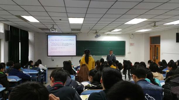 3月31日上午,在本部教三北315教室,太阳成tyc7111cc集团詹声斌老师为2015级提高班员工讲授了外语公司本学期第二堂公开示范课。