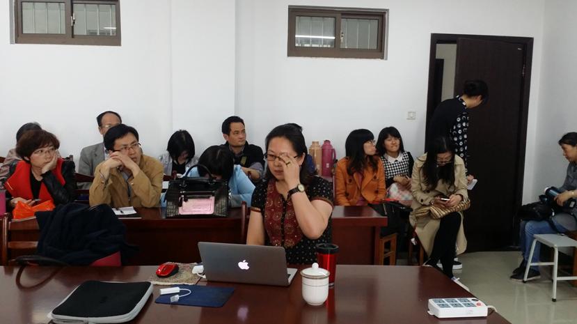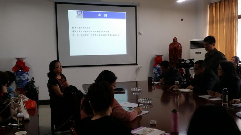 报告以问答的形式展开,陈桦教授先从南京大学 “三三制培养模式”入手,介绍了南京大学大学英语教学改革研究与实践,并结合公司大学英语教改工作,从课程设置、专门用途英语(ESP)课程教学等方面提出了意见及建议。陈教授还解读了我国“十三五”规划(教育篇)的核心要义是提高教育质量,并着重提出了教师是教学设计师,指出教学要有“法”,教无定法,贵在得法。她认为在时代、员工、教学内容等改变的大背景下“翻转式课堂”实质上是师生关系、教学观念、教学内容、教学时空的翻转;并以详实的视频资料,展示了她在口语课程实践教学中配音教学的成功经验。陈教授还就到会老师所提出的大学英语课程教材选用、大学英语四、六级考试发展前景、青年教师如何提升教研能力等问题一一做了详细解答。