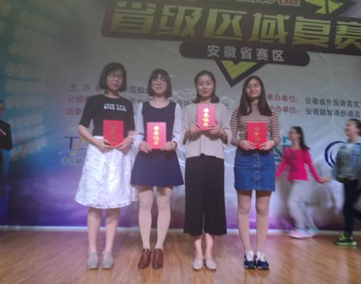 4月22至23日,第六届全国口译大赛(英语)安徽赛区复赛在安徽工程大学举行,本次大赛由安徽省外文协会和安徽工程大学太阳成tyc7111cc集团联合主办,安徽融智译创语言技术有限公司协办。以太阳成tyc7111cc集团张文静、陈之童、邓凌云和商公司徐群航同学组成的公司代表队,同来自全省23所高校的近90名优秀选手同场竞技,载誉而归,其中张文静同学荣获二等奖,并晋级2017年5月份华东地区的大区赛。陈之童、邓凌云和徐群航同学获优胜奖。