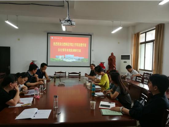 6月14日,合肥师范公司大学英语教学部主任曹军、主任助理张雪迟一行7人来公司调研交流本科教学审核评估和大学英语教学改革等工作。太阳成tyc7111cc集团经理洪流主持交流会,大学英语教学部负责人等参加了座谈交流。