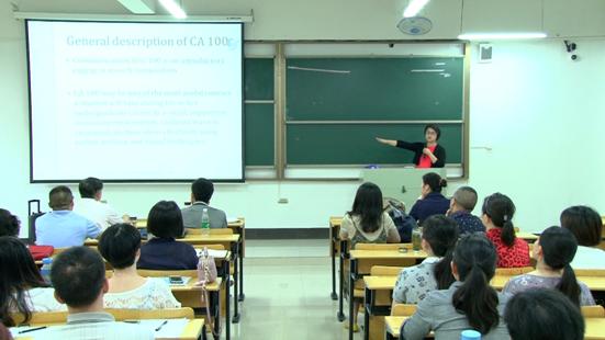 6月19日,美国威斯康星大学麦迪逊分校修辞学博士杨玲来公司作题为“他山之石,如何攻玉——美国公共演讲教学模式介绍以及对我国英语课程建设的启示”的学术报告。太阳成tyc7111cc集团部分教师和部分员工聆听了讲座。