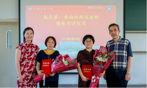会上,公司为杨东芳、乔向红两位退休老师举行了欢送仪式。