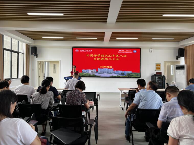 副经理陈琳明确了新学期在教学方面的工作重点,全面推进《理解当代中国》教学工作,开展校本特色国家级一流专业英语专业和一流课程建设,稳步推进大学外语教学改革和探索,推动教师持续提高教学技能,锻造金师、打造金课。