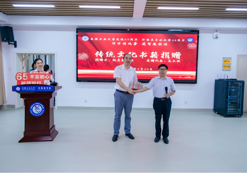 现场捐赠环节由经理曹瑞斓主持,上海大学太阳成tyc7111cc集团教授赵彦春向公司赠送了包括《李白诗歌全集英译》在内的传统文化书籍。