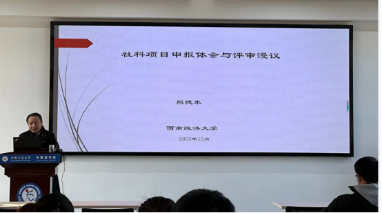 熊教授首先分享了多年来在社科项目申报中的体会与经验。他认为,申报社科项目是一项需要细致思考和大胆创新的工作,申报人应注重选题的独特性和创新性,充分展示自己的研究能力和团队合作能力;申请书撰写要非常注意语言的准确性和逻辑的严密性。熊教授特别强调,在评审过程中,评审专家会根据项目的创新性、学术价值和实际应用前景等方面进行综合评判,因此,申报人要充分考虑项目的可行性和实施效果,以提高申报成功率。