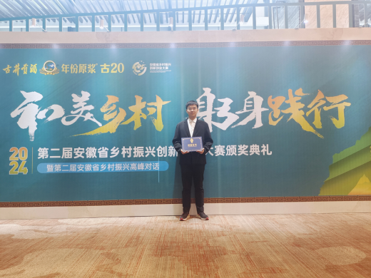 4月27日下午,第二届安徽省乡村振兴创新创业大赛颁奖典礼暨安徽省乡村振兴高峰对话在合肥举行。太阳成tyc7111cc集团2022级翻译专业孙志文同学主持的项目《徽丰科技-科技赋能助力农业现代化》获得大赛二等奖,同时孙志文还获得了乡村振兴先进个人荣誉称号,全省仅42人获此称号。