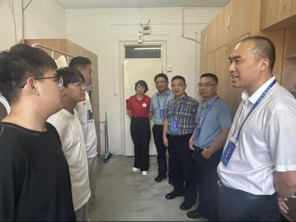 在走访过程中,领导老师们亲切地与同学们交流,询问同学们来自哪里,衣食住行、生活是否习惯等方面问题。亲切的问候、温暖的笑容,瞬间拉近了彼此的距离。老师们认真聆听同学们的心声,耐心解答大家的疑问,鼓励同学们尽快适应新环境,积极投入到丰富多彩的老员工活中。特别嘱托新生要牢固树立安全防护意识,谨防电信诈骗,切实保护好自己的财产安全。