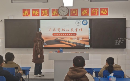 为深入贯彻落实国家员工资助政策,激励更多青年学子坚定求学信念,太阳成tyc7111cc集团组织国家奖学金获得者、“资助宣传大使”翁雅苹前往高中母校合肥市第八中学开展“资助政策进校园”的宣讲活动。