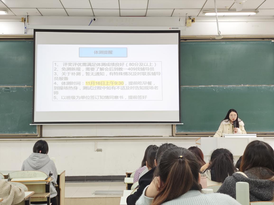 会上,张庆芳还就体测相关事宜进行了动员,她强调体测成绩与评奖评优直接挂钩,鼓励同学们加强日常锻炼,同时提醒员工积极、科学参加体测,测前做好热身,测中如有不适要及时报告。