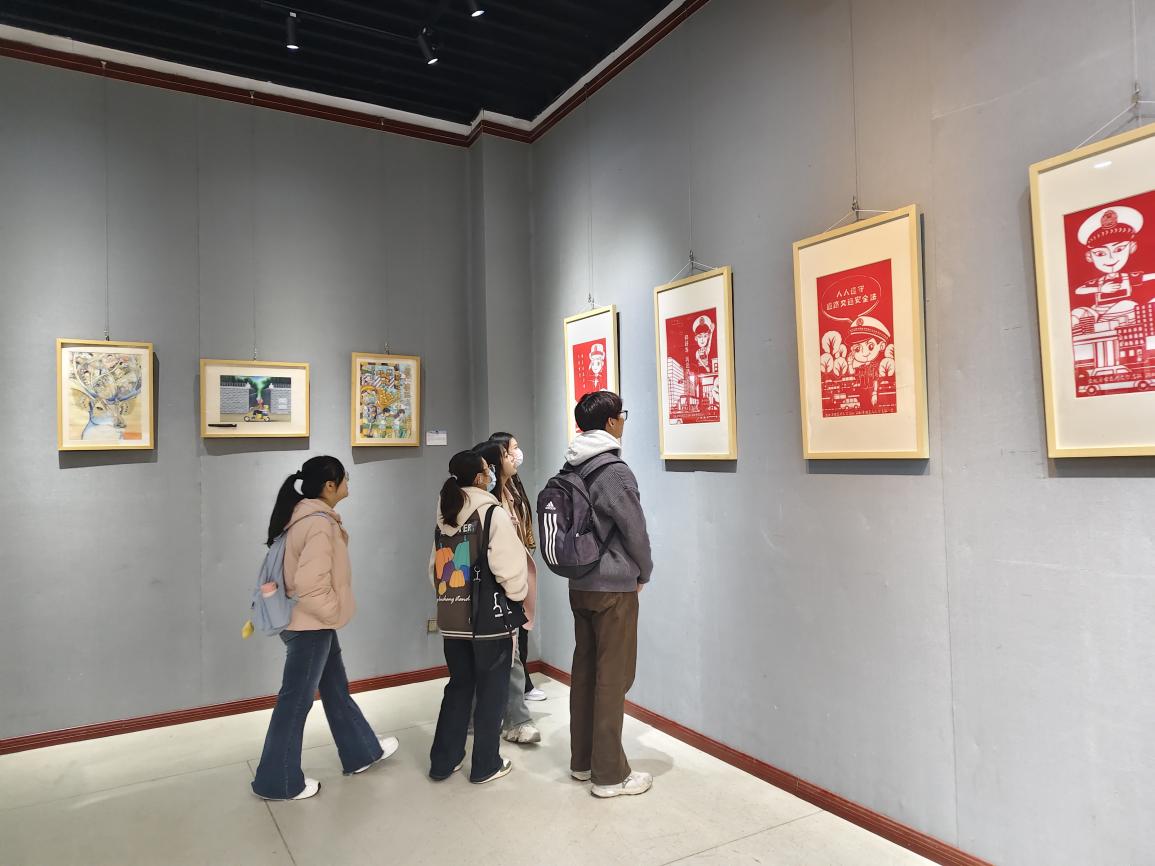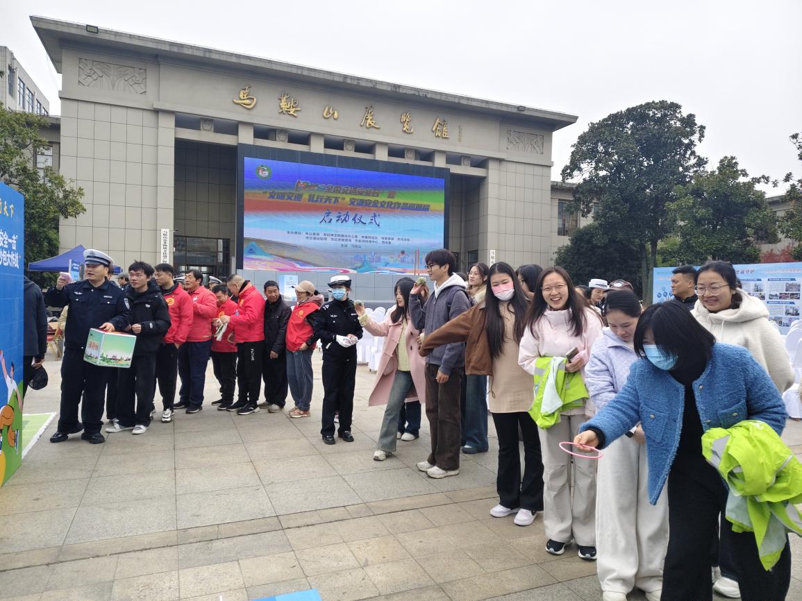 仪式结束后,师生代表们参观了交通安全文化作品巡回展,一幅幅主题鲜明的绘画、寓意深刻的海报、生动形象的剪纸,让大家直观感受交通安全的重要性。在互动游戏区,“套圈辨交通标志”“砸沙包答交通安全小知识”等趣味活动备受青睐,同学们在轻松竞技中巩固交通法规,提升风险防范意识。