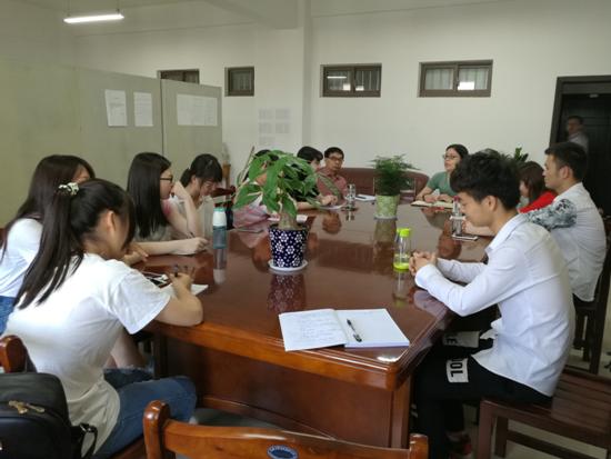 5月19日下午,太阳成tyc7111cc集团在汇文楼B511召开期中教学检查员工座谈会, 外语系主任陈琳主持座谈会,外国语公司党委书记胡卫东、外语系党支部书记马广利、副主任蒯振华以及来自英语专业各年级的10余名员工代表参加了座谈。