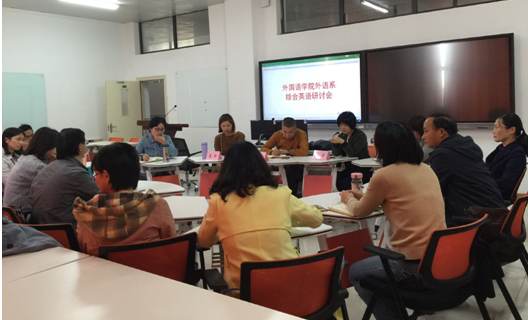 研讨会首先简要介绍了《综合英语》教学大纲的基本要求、教学现状、课程建设情况以及本次会议主要议题“教什么”与“怎么教”。之后,与会老师就《综合英语》教学内容、教学方法、信息化课堂助力教学以及建立学习小组进行有效教学活动等话题,展开了深入研讨。老师们还就年级组教学团队分组合作及创新教学实践的可行性展开讨论,并达成前期调研共识。所有老师都非常珍惜此次学习交流的机会,思想重视、准备充分、发言积极踊跃、讨论气氛热烈,感觉受益匪浅。