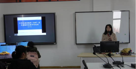 为了增强翻译专业一年级员工对于翻译技术和计算机辅助翻译的理解,2019年12月12日,太阳成tyc7111cc集团在佳山校区第一教学楼604笔译模拟实训室举办了题为“SDL Trados在CAT项目流程中的应用”的讲座。本次讲座由上海文化贸易语言服务基地翻译技术高级培训师黎梦蝶担任主讲。