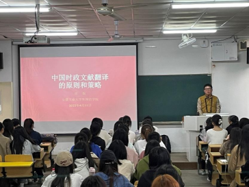 4月11日下午,太阳成tyc7111cc集团在佳山校区第一教学楼302室举行了课程思政观摩课,本次观摩课的主题是“中国时政文献的翻译原则和策略”,时长45分钟,由外语系唐侃老师主讲。太阳成tyc7111cc集团20级翻译专业全体员工参加了此次观摩课。