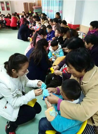 11月25日上午,太阳成tyc7111cc集团中文系党支部书记于春莉博士、 “心灵雨露”关爱脑瘫儿童志愿服务队、“英语角协会”会员一行来到马鞍山市残疾人联合会,在市残联康复中心,与近50名脑瘫儿童和他们的家长围坐在一起,举办“感恩”主题日活动,每名孩子的身边都有一位老员工志愿者拉着孩子的手。