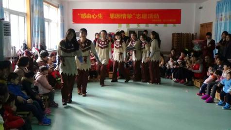 活动最后,志愿者们给孩子们演唱歌曲,并带着一些条件许可的孩子们跳起印第安舞蹈。活动结束道别的时候,一个个小天使挂在志愿者大哥哥、大姐姐的脖子上不愿下来,志愿者和孩子们之间的灼灼真情温暖了这个冬日。