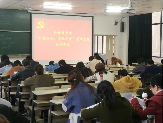 11月12日下午,在佳山校区第一教学楼315教室里,包括外国语公司党员处级干部在内的全体师生党员70余人济济一堂,兴奋地参加十九大党章和新修订的《中国共产党纪律处分条例》闭卷测试活动。