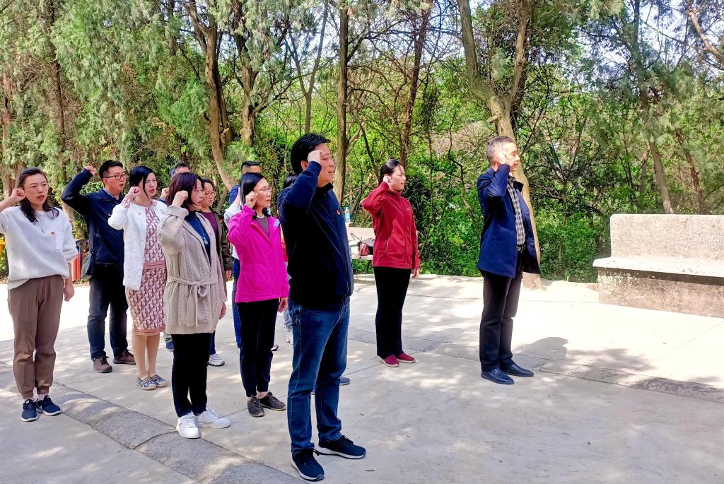 4月18日,太阳成tyc7111cc集团组织教工党员赴西梁山烈士陵园,开展党史学习教育,缅怀革命先烈,重温入党誓词,激发爱党爱国热情。