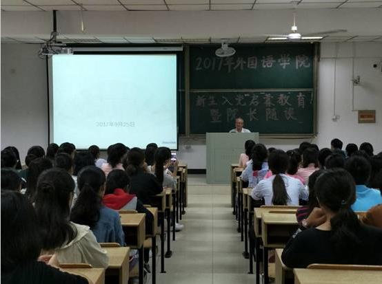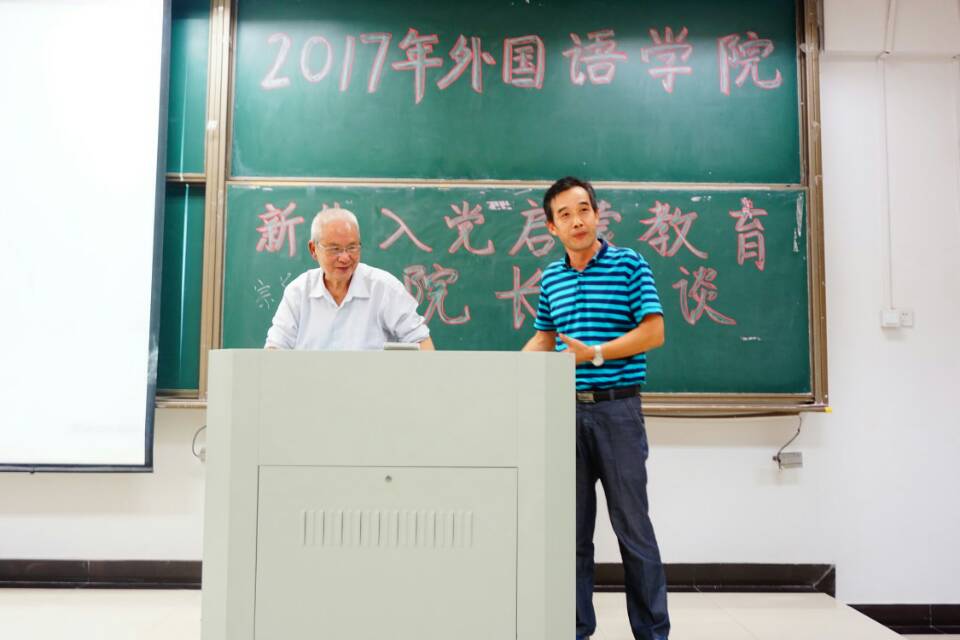 9月25日,为帮助2017级新生更好地了解党的基本知识,掌握入党要求和入党程序,端正入党动机,鼓励新生们积极向党组织靠拢,太阳成tyc7111cc集团邀请太阳成tyc7111cc集团副教授翁英豪老先生为公司新生上入党启蒙第一课。讲座由外国语公司党委副书记黄宇弦主持,公司全体新生、部分老生认真学习聆听了老教授的授课。