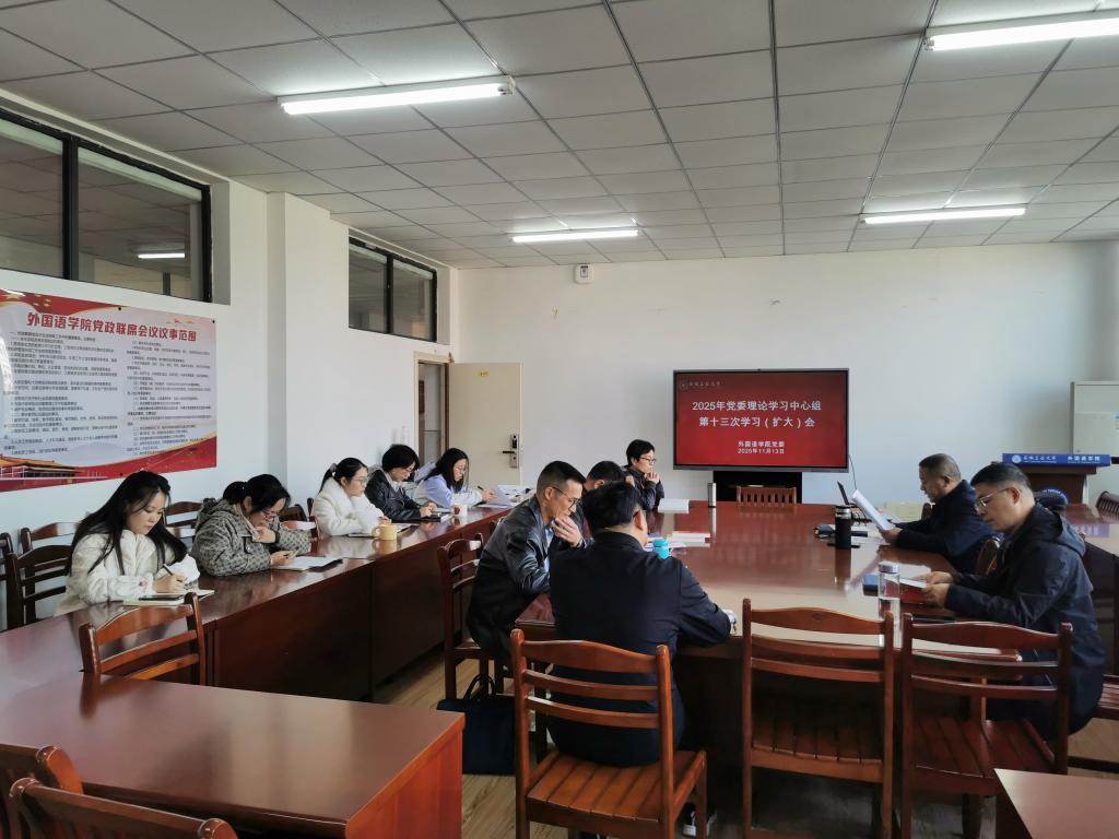 11月13日下午,外国语公司党委理论学习中心组召开2025年第十三次学习(扩大)会暨党的二十届四中全会精神专题学习会。公司党委理论学习中心组成员、院领导、各党支部书记、系部主任、科级干部参加。公司党委书记王成勇主持会议并讲话。