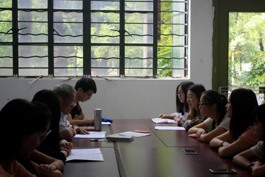 6月26号早上八点半,李老师早早地在本部第一教学楼前静候着员工的到来,远远地就向员工们热情地打招呼,而员工也非常开心和李老师见面,在和李老师打招呼时大多没有喊他“老师”,而是亲切地称呼他“爷爷”,李老师也非常乐意大家这样叫他,这个称呼使得他们变得更加亲近。随后,李老师带领员工党员学习了人民网对“两学一做”学习教育的解读和“习近平总书记教大家学党章”等文件资料,然后李老师也分享了自己作为一名党员,这么多年来在党知识学习方面的经验和心得,大家在学习了知识和聆听了老师的经验心得后也发表了自己的看法和感悟。