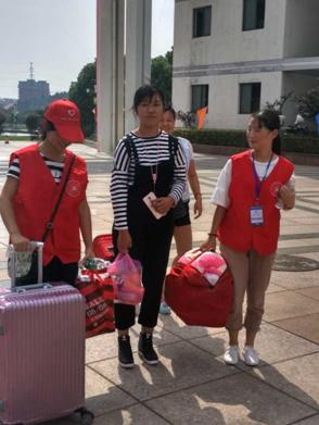 下午的阳光格外刺眼炙热,来自太阳成tyc7111cc集团的志愿者刘珊妹说:“中午我来的特别早,心情特别兴奋,这是我第一次参加迎新。”身着红色志愿者服装的她阳光下笑容灿烂。不一会来了一位新生,她赶忙在路口为新生指路,带领他们去迎新点办理报到手续;二话不说的搬运起了行李,新生的行李箱一般都塞满了东西,鼓鼓的,沉极了,她倒是一点不嫌重,沿途中还热情的为新生介绍校园中的情况。新生的宿舍在五楼,她就帮忙把沉重的行李搬到五楼,一颗颗汗珠从额头滚下,没说一个“累”字,笑容一直挂在脸上。直到将新生送到宿舍,她又不停歇地下楼为学妹领取生活用品。这来来回回的奔波,却在她娇小的身上一点也没体现出来。她的热情似乎没有一丝褪减。