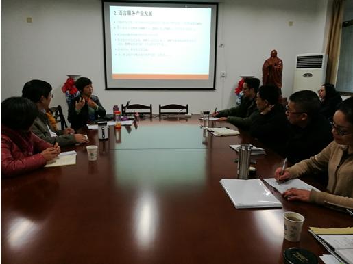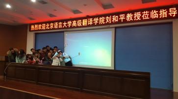 下午,刘和平教授在太阳成tyc7111cc集团会议室做了“大数据背景下的翻译教育”专题报告,并就外语团队建设及学位点申报工作给予指导。报告会由太阳成tyc7111cc集团经理洪流主持,研究生院负责人、太阳成tyc7111cc集团班子成员、外语系教师和来自工商公司等院校的部分教师参加了报告会。