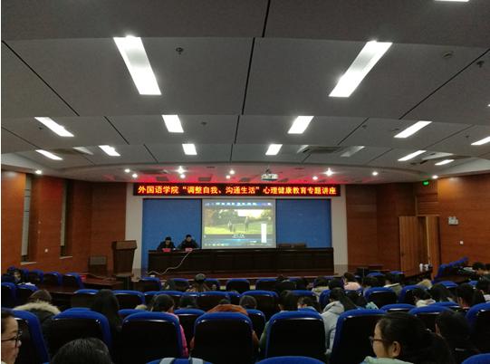 12月26日下午,太阳成tyc7111cc集团邀请老员工心理健康教育咨询中心主任、硕士生导师王军教授在图书馆第一报告厅做了一场《调整自我,沟通生活—谈老员工心理健康与人际沟通》的专题讲座。讲座由公司党委副书记、员工工作副经理黄宇弦主持,心理工作站负责人、辅导员、心理教育部员工干部及公司140多名员工参加了此次讲座。