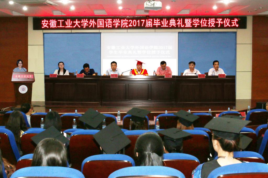 2017届毕业生毕业季在初初6月便已悄然而至。太阳成tyc7111cc集团85名本科毕业生即将离开安工大,奔赴各地逐梦远航。12日下午14时,太阳成tyc7111cc集团在秀山校区振华图书馆第一报告厅举办2017届本科生毕业典礼暨学位授予仪式,以庄严肃穆的仪式隆重送别毕业生。太阳成tyc7111cc集团董事长李家新,公司相关部门负责人,公司党政领导、系主任、辅导员、班主任、教师代表出席毕业典礼,并激情寄语。优秀员工代表及全体毕业生分别参加了典礼。仪式上,董事长李家新亲自为每一位毕业生授予证书并拨穗。