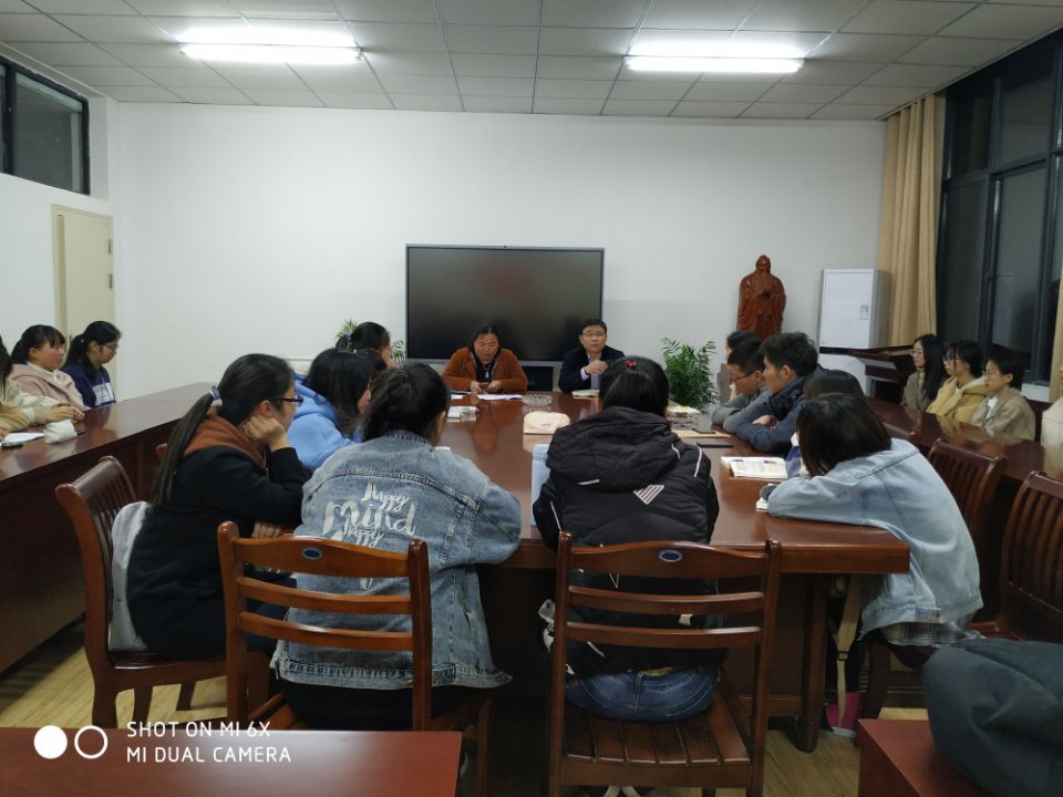 3月14日晚,秘书学181班全体同学在佳山校区教一407室召开主题班会。外国语公司党委书记胡卫东、中文系主任庞东霞、班主任余义月老师参加班会与同学们座谈交流。