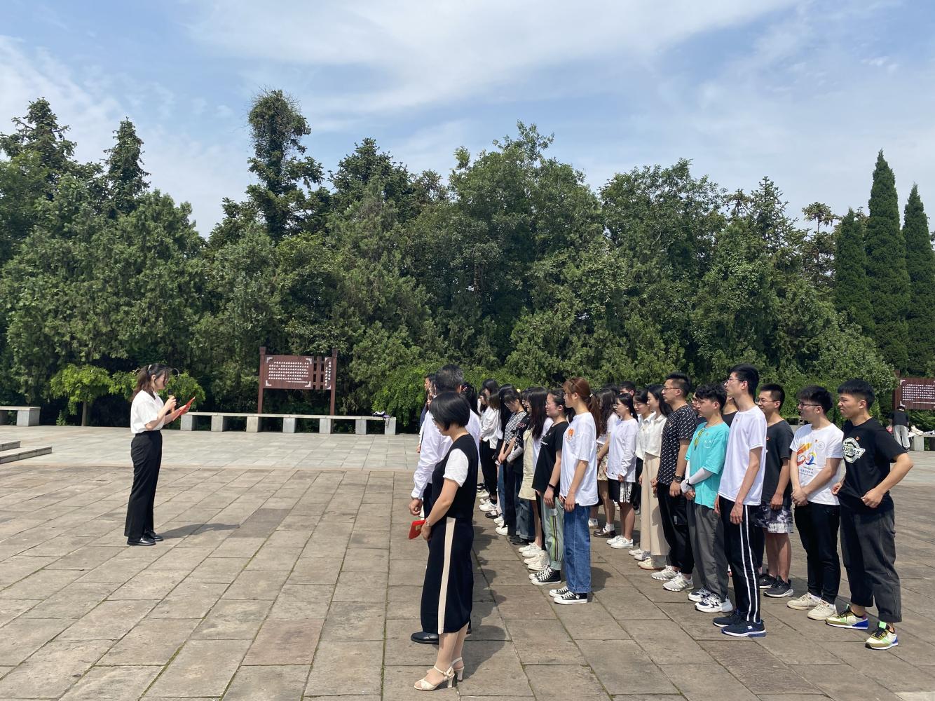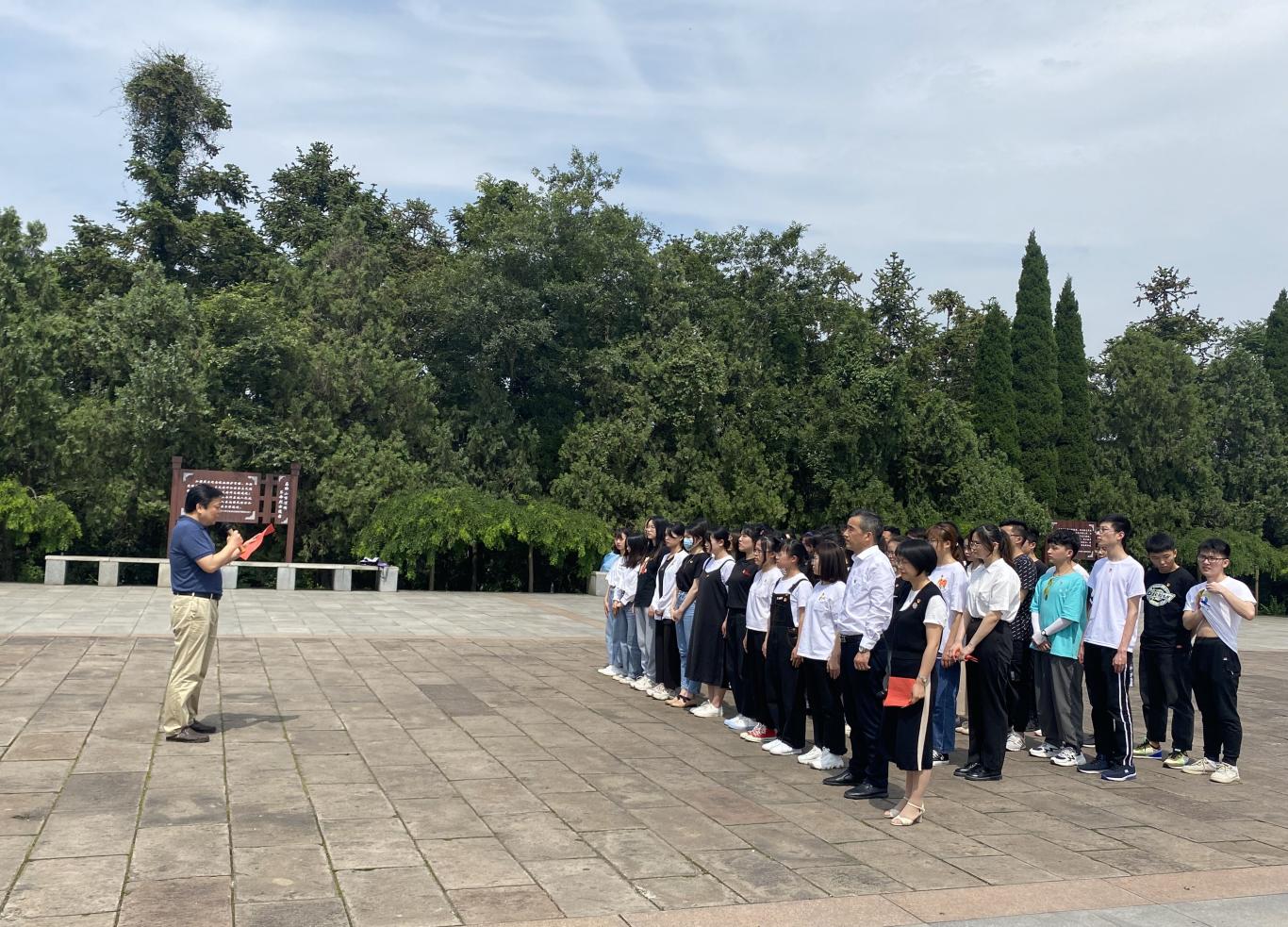 陈庆林宣读了公司党委关于同意吸收2021年两个批次新发展的同学为中共预备党员的批复。在员工第二党支部书记张美玲的领誓下,全体党员庄严地举起右手,向鲜红的党旗宣誓“为共产主义奋斗终身,随时准备为党和人民牺牲一切,永不叛党!”铿锵的誓言在烈士陵园上空回响,表达了大家对党的无限忠诚,现场氛围庄严而神圣。英193班权晓冉作为新党员代表发言,她用真挚热忱的语言表达了加入党组织的激动心情,表示会牢记这个神圣的时刻,决心要在今后的工作和学习中充分发挥共产党员的先锋模范作用,以实际行动为党旗增辉,为党的事业奋斗终身。
