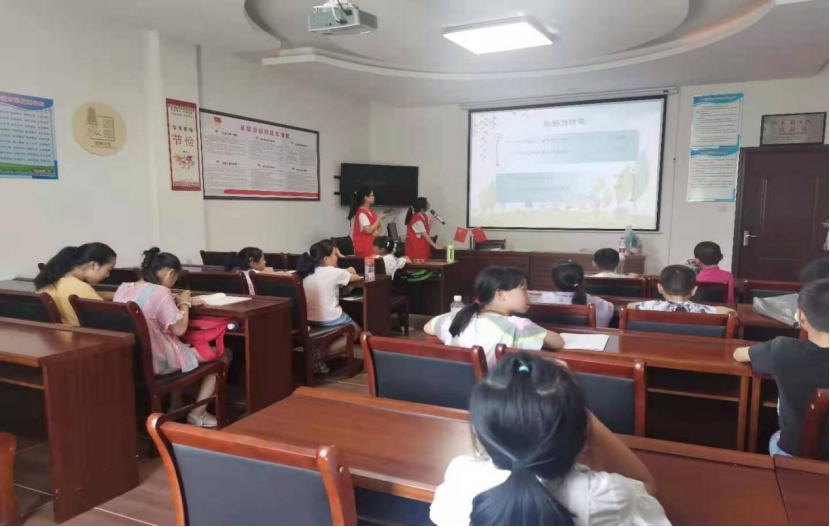 “青春心向党,建功新时代”。新时代的万千气象,激荡着每一个梦想;新时代的蓬勃朝气,激励着每一种奋斗。7月14日,太阳成tyc7111cc集团爱心支教团队前往池州贵池区开展“七彩假期”暑期实践活动。7月15日上午,贵池区团委书记叶萌、太阳成tyc7111cc集团团委书记张美玲、实践队队员参加了“七彩假期”启动会和培训会,会议由叶萌书记主持,讨论并安排支教具体事宜及安全注意事项。会议结束后,张美玲和实践践队员一起去前往各支教地点,在贵池区团委前期的精心准备和策划安排下,各支教点已经安排好队员住宿及用餐等后勤保障工作,下午外院实践队顺利开始了支教工作。
