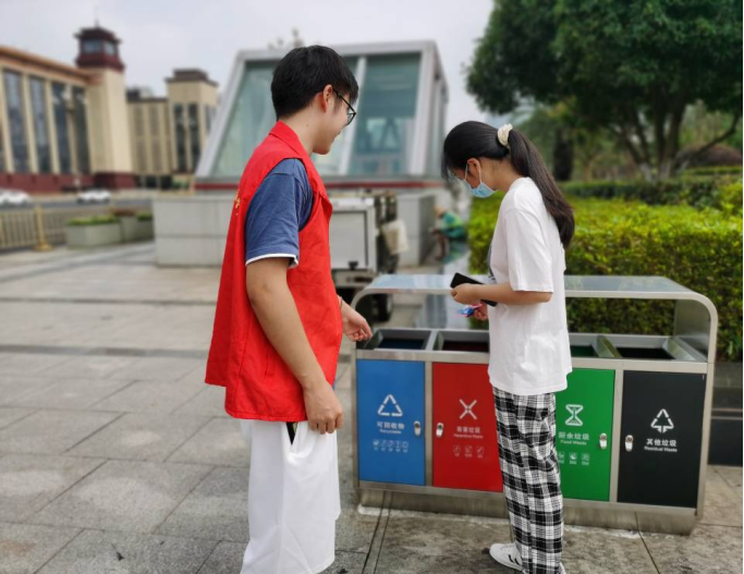 南昌,是人民军队的诞生地,又是一座富有光荣革命传统的英雄城市。实践队员来到了南昌秋水广场,了解学习优秀党员事迹,参观毛主席诗词雕刻。在这里,队员们体会到了红色精神这一主旋律。在八一广场上,南昌起义纪念塔巍峨耸立,起义的一声枪响,人民军队由此发端。100年来,中国共产党团结带领中国人民,以“为有牺牲多壮志,敢叫日月换新天”的大无畏气概,书写了中华民族几千年历史上最恢弘的史诗。在参观学习之后,队员们开展了社会服务实践活动。交通劝导,光辉党史宣讲,普及垃圾分类知识……在这一件件小事中,队员们以实际行动来感悟红色精神,用奉献付出向革命先辈致敬。