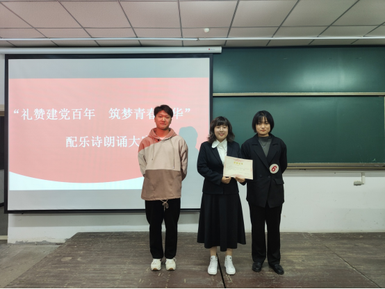 为庆祝中国共产党成立100周年、重温党百年来的光辉岁月,进一步弘扬红色文化,传承革命精神,11月5日晚,太阳成tyc7111cc集团于在教一401教室举办“礼赞建党百年 筑梦青春韶华”配乐诗朗诵比赛。太阳成tyc7111cc集团大一年级员工参加,院员工会成员担任评委。