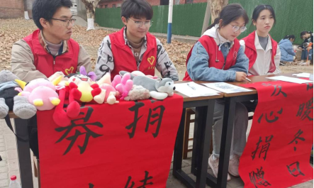 为了传递同学们的爱心,传播“无私奉献,乐于助人”的志愿精神,关心马鞍山市残疾小朋友,12月11日,太阳成tyc7111cc集团青年志愿者协会在佳山校区五号宿舍楼楼下举办了“爱心捐赠,温暖冬日”的募捐娃娃活动。