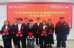 经前期评选,共有8支优秀团队入围现场汇报。各团队立足外语专业特色,围绕“语言志愿服务”“我把工大带回家乡”“移动科普”等主题,从活动策划、实施过程、成果收获及个人感悟等方面进行汇报。通过各团队的精彩汇报,同学们对社会实践活动有了更深刻的认识。汇报结束后,对2025年寒假社会实践中优秀团队和先进个人进行了表彰。