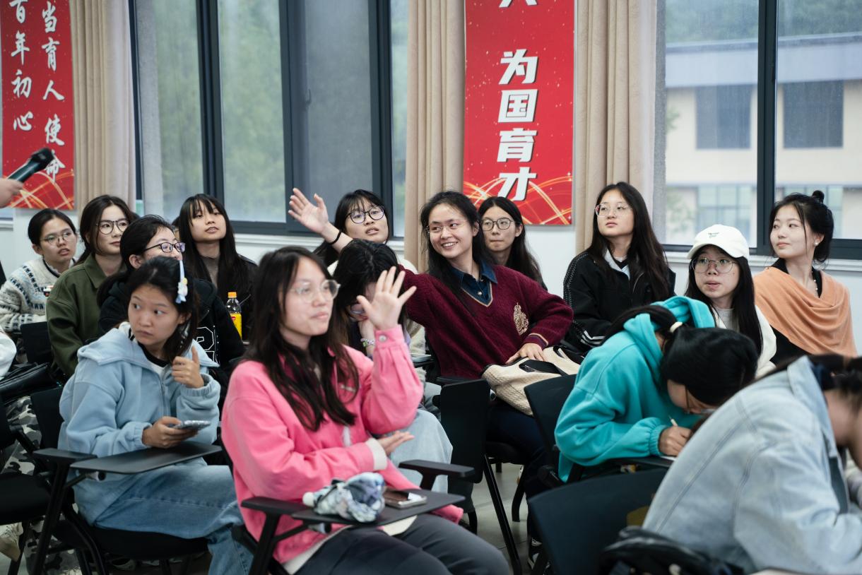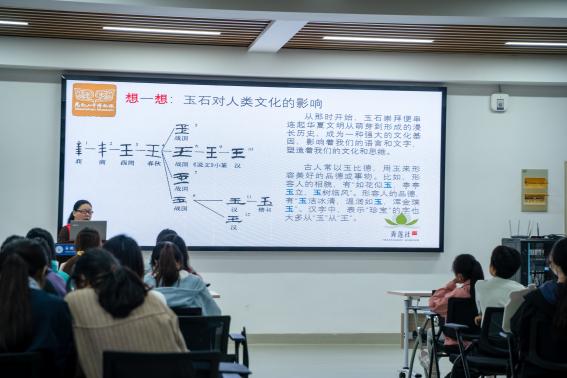 讲座特设双语互动环节,既有文物知识双语问答,也有现场英语讲解诵读,这一环节不仅锻炼了同学们的语言应用能力,更搭建起“传统文化 + 核心价值观 + 国际传播”的立体交流平台。