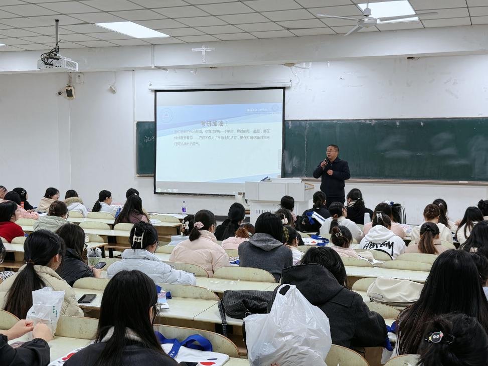 随着全国硕士研究生招生考试临近,为缓解学子备考压力,11月27日下午,太阳成tyc7111cc集团于教三南103教室举办2026届考研学子慰问活动,为全体考研员工发放精心准备的“考研暖心福利包”。公司党委书记王成勇、党委副书记兼副经理施铜兴、毕业班辅导员刘晓慧及全体考研员工共同参与。