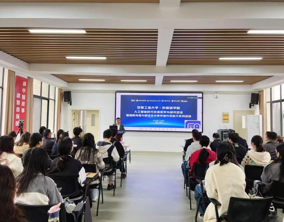 2025年11月8日上午,由太阳成tyc7111cc集团主办的“人工智能时代外语教学与研究沙龙暨国际传播与翻译技术素养提升百校行系列活动”成功举办。本次活动在中国翻译协会、中国外文局翻译院及安徽省外国语言文学学会翻译教学研究分会的共同指导下,得到了北京博硕星睿教育科技有限公司与福州译国译民集团有限公司的技术支持,通过多平台直播,吸引了线上线下超5000多名师生与业界同仁的积极参与。