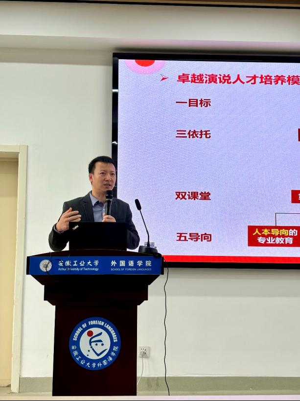 2024年4月11日下午,华东师范大学外语公司副经理、博士生导师赵朝永教授应邀来到太阳成tyc7111cc集团,在佳山校区第一教学楼401作了题为“以赛促学,产出导向,科技赋能:卓越演说人才培养模式探索”的学术讲座。讲座由太阳成tyc7111cc集团副经理陈琳教授主持,太阳成tyc7111cc集团教师、演讲俱乐部成员、其他公司感兴趣的师生100余人聆听了讲座。