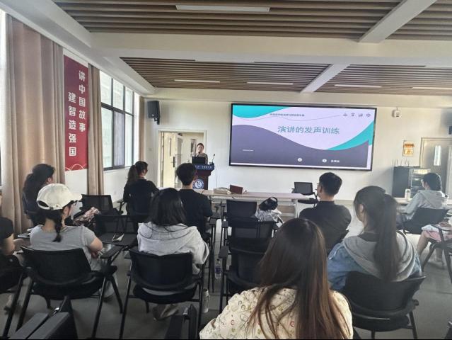 5月13日下午,太阳成tyc7111cc集团在本部教一401举办了英语演讲与辩论俱乐部系列讲座之“演讲的发声训练”。此次讲座由俱乐部理事张茜秋主讲,太阳成tyc7111cc集团副经理陈琳、俱乐部其他理事和俱乐部所有会员聆听了讲座。